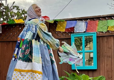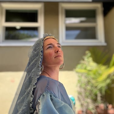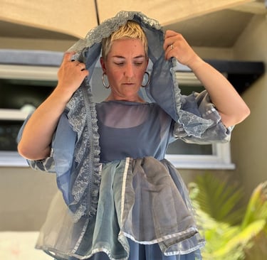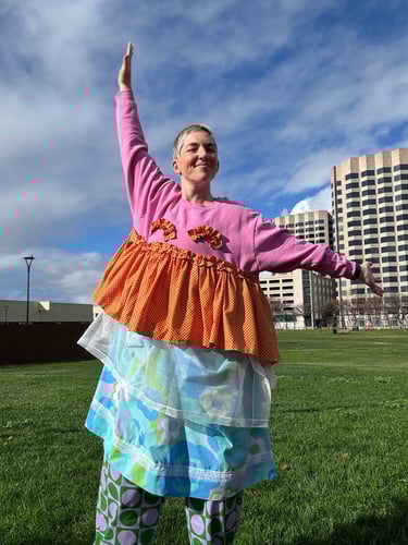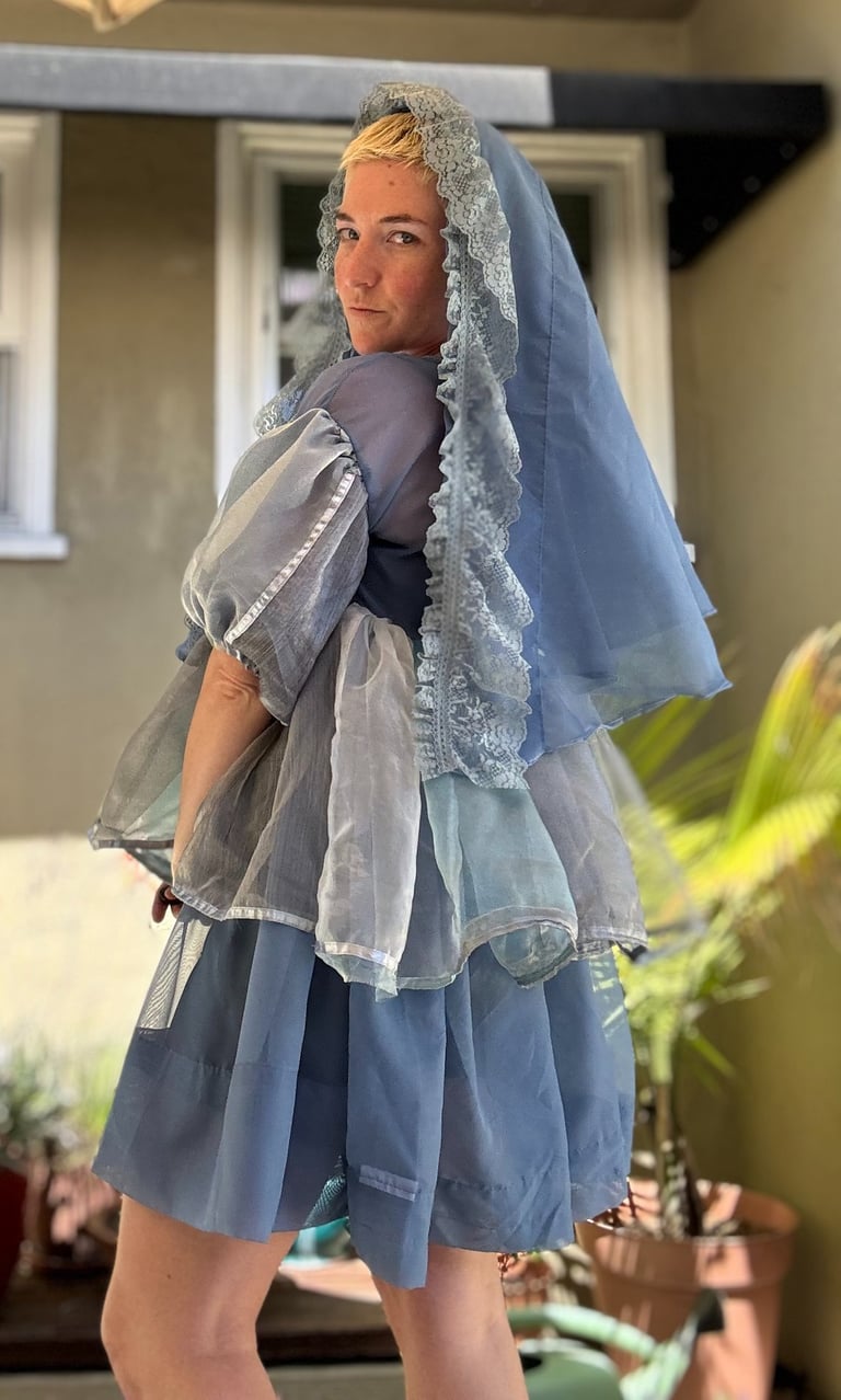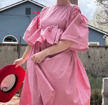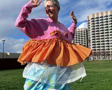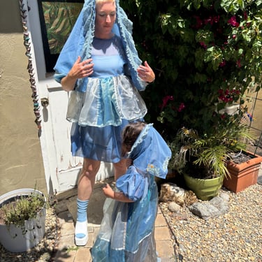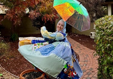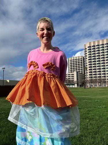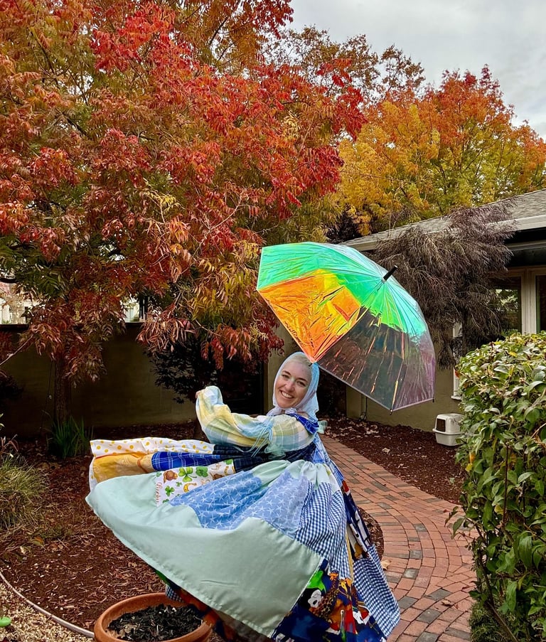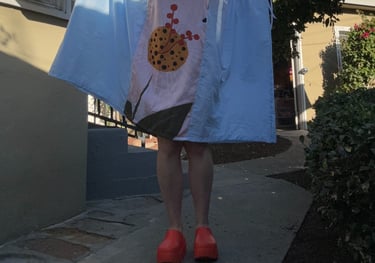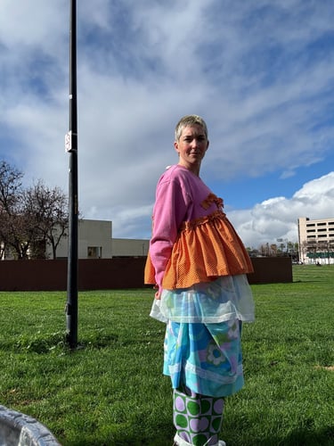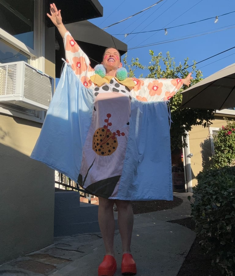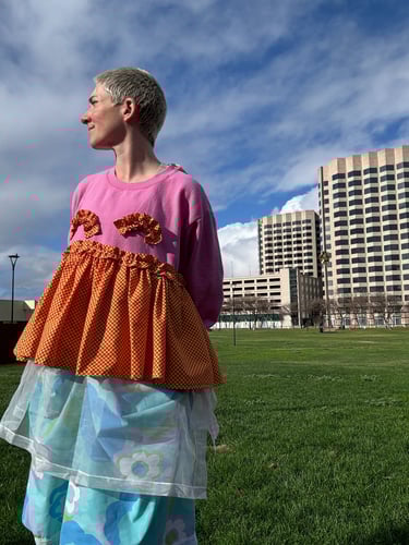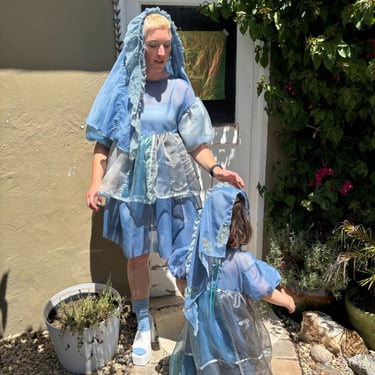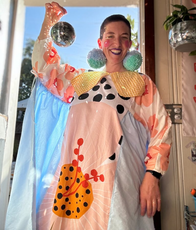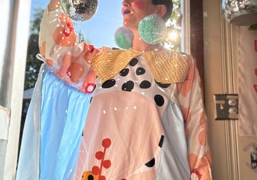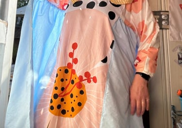 I was inspired by Carly B (@fromcarlyb) and used her pattern breakdown to create this giant dress made from 10+ thrifted bedsheets.