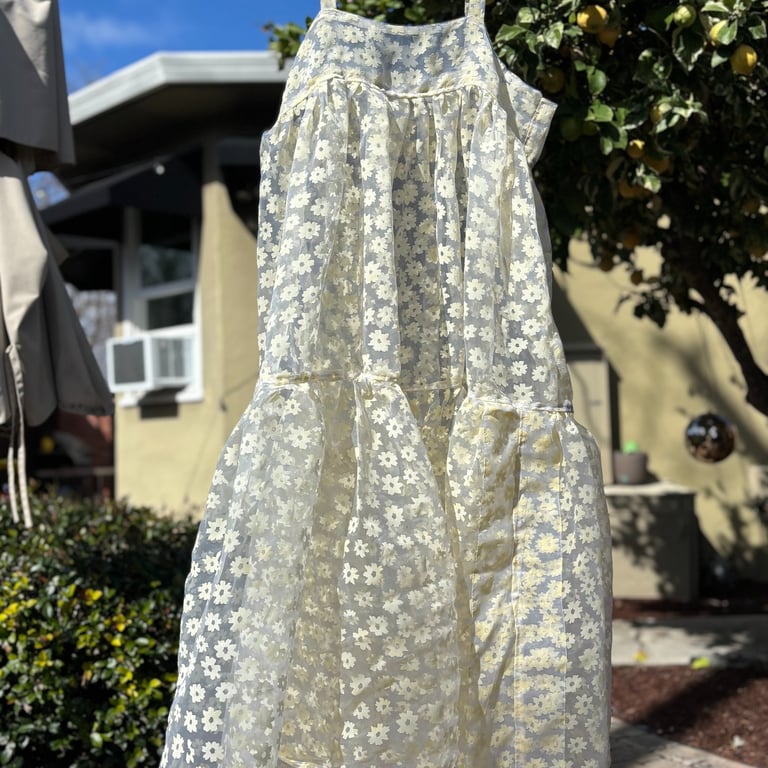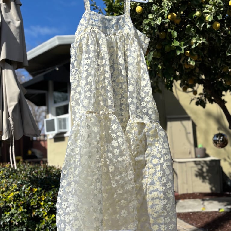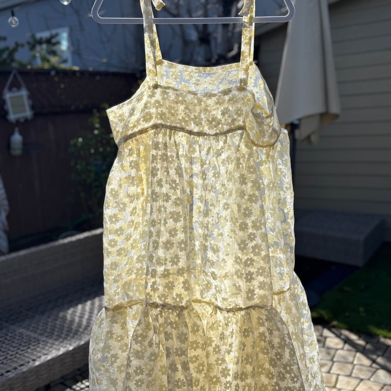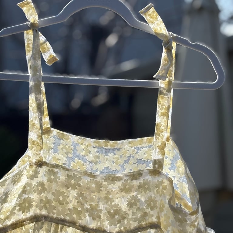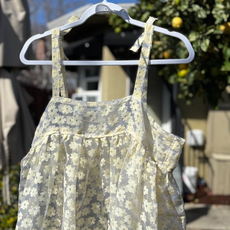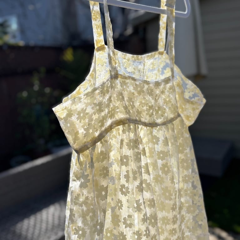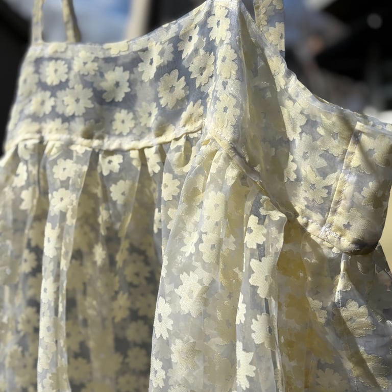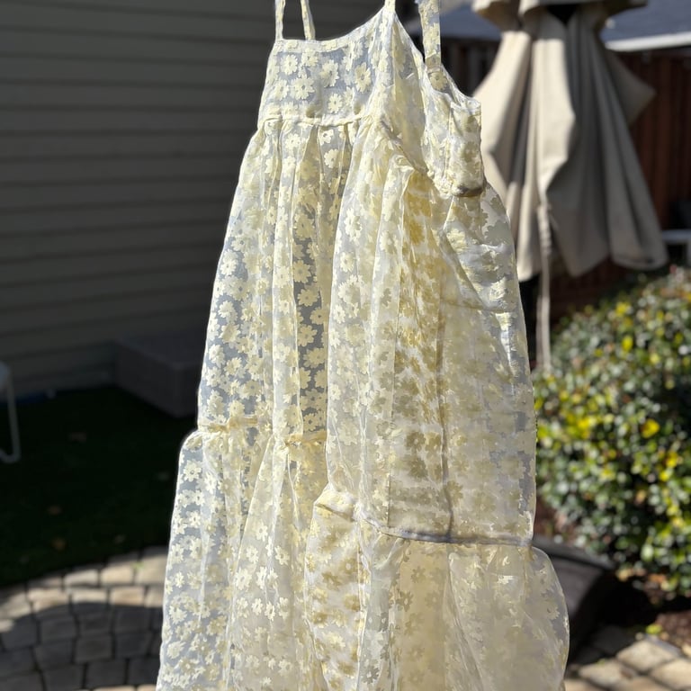 I am obsessed with this lil sheer summer dress and can't get enough of the delicate flowers and buttery yellow color.