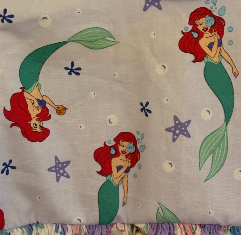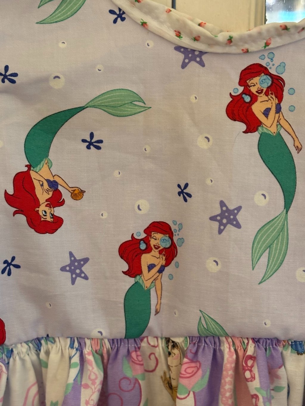 I designed this dress with movement and function in mind. I added utility loops for her to hang items from her ruffle tiers, and ribbons so she could shorten the dress while playing on the playground.
