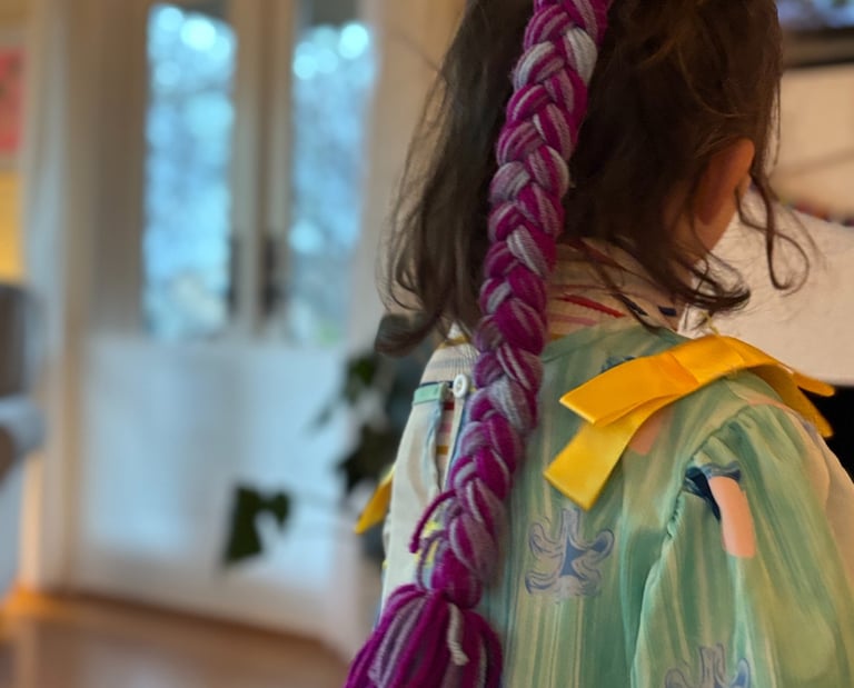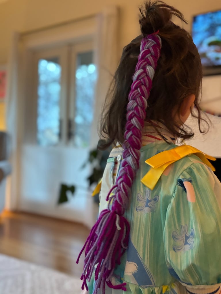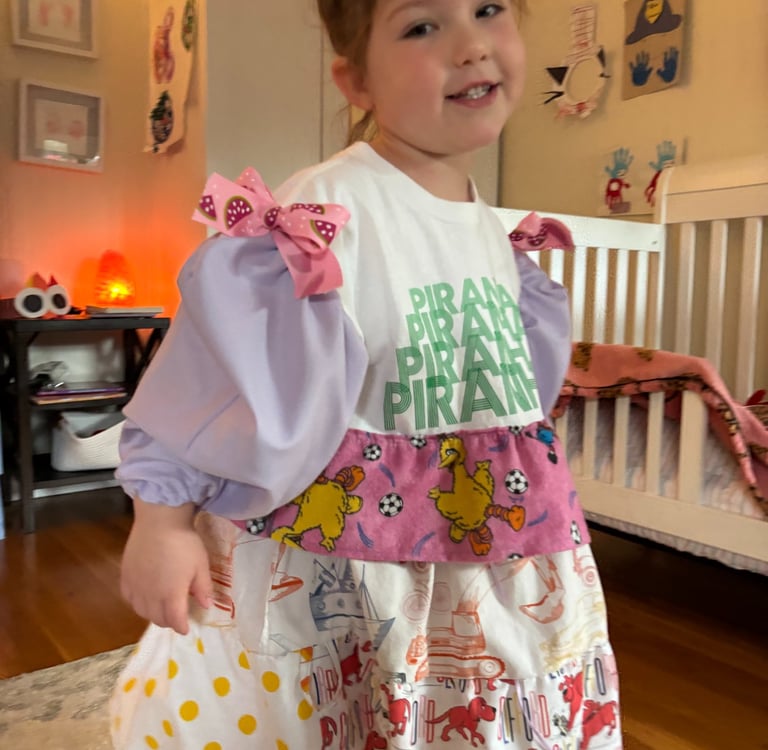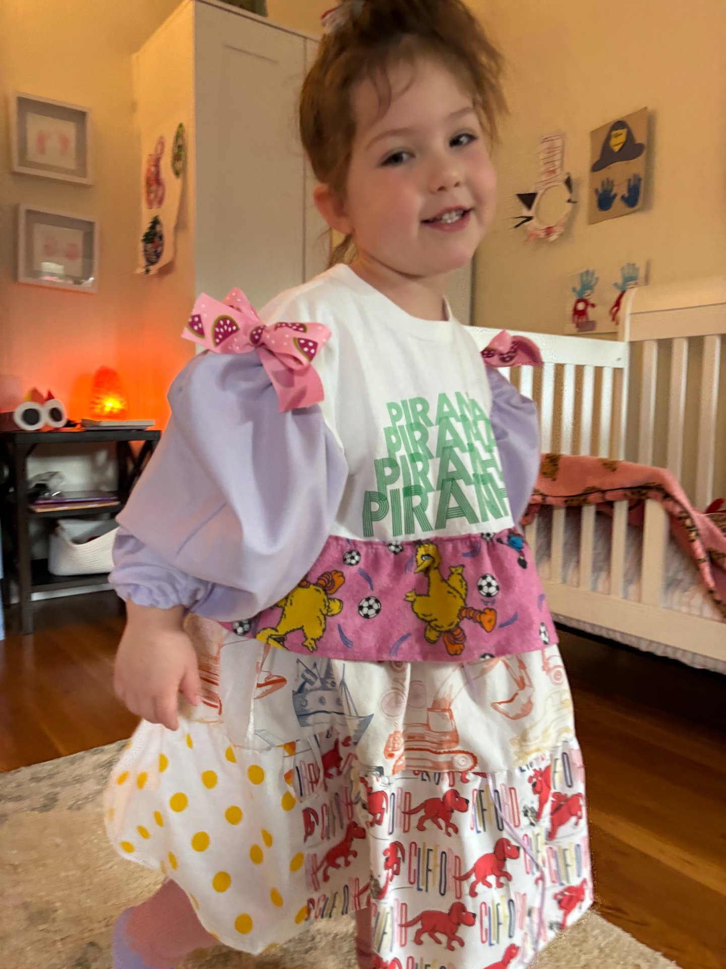 I love teaching my daughters that we can get creative and make our own dress up instead of contributing to consumerist waste. I made this from a t-shirt she already had and some thrifted fabrics I collected.