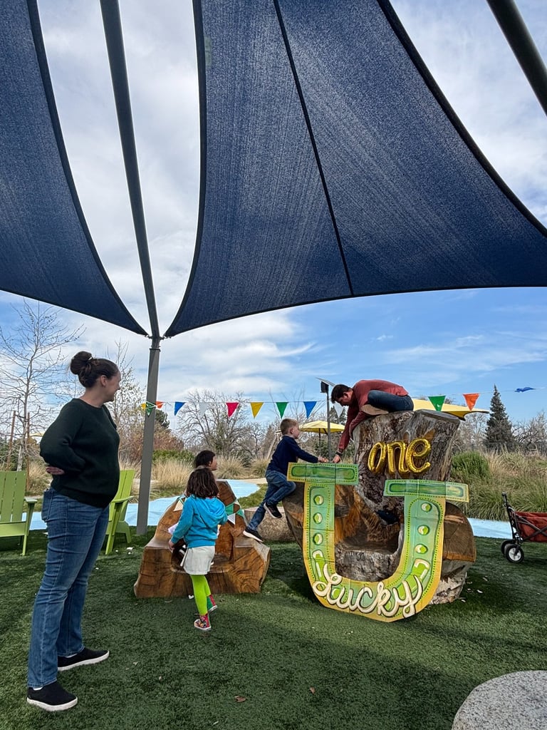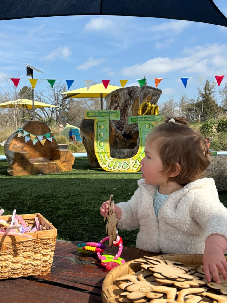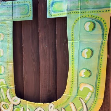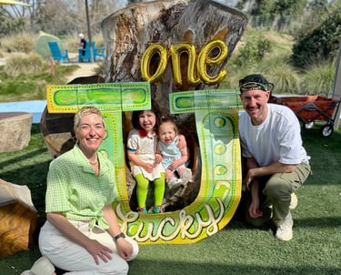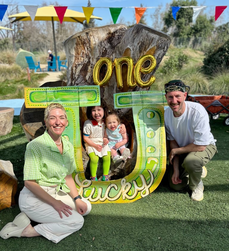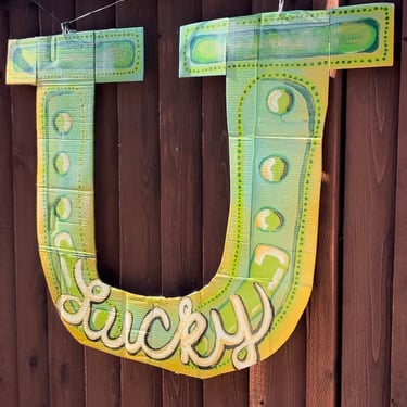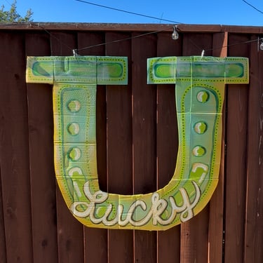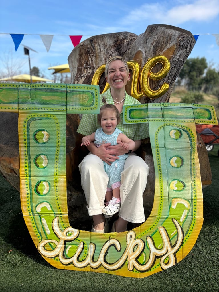 Is how I envisioned my baby girl's first birthday vibe. She was born March 1st and it always seemed like a special, lucky, green, spring, shiny day. I made this big horseshoe out of her old diaper boxes.