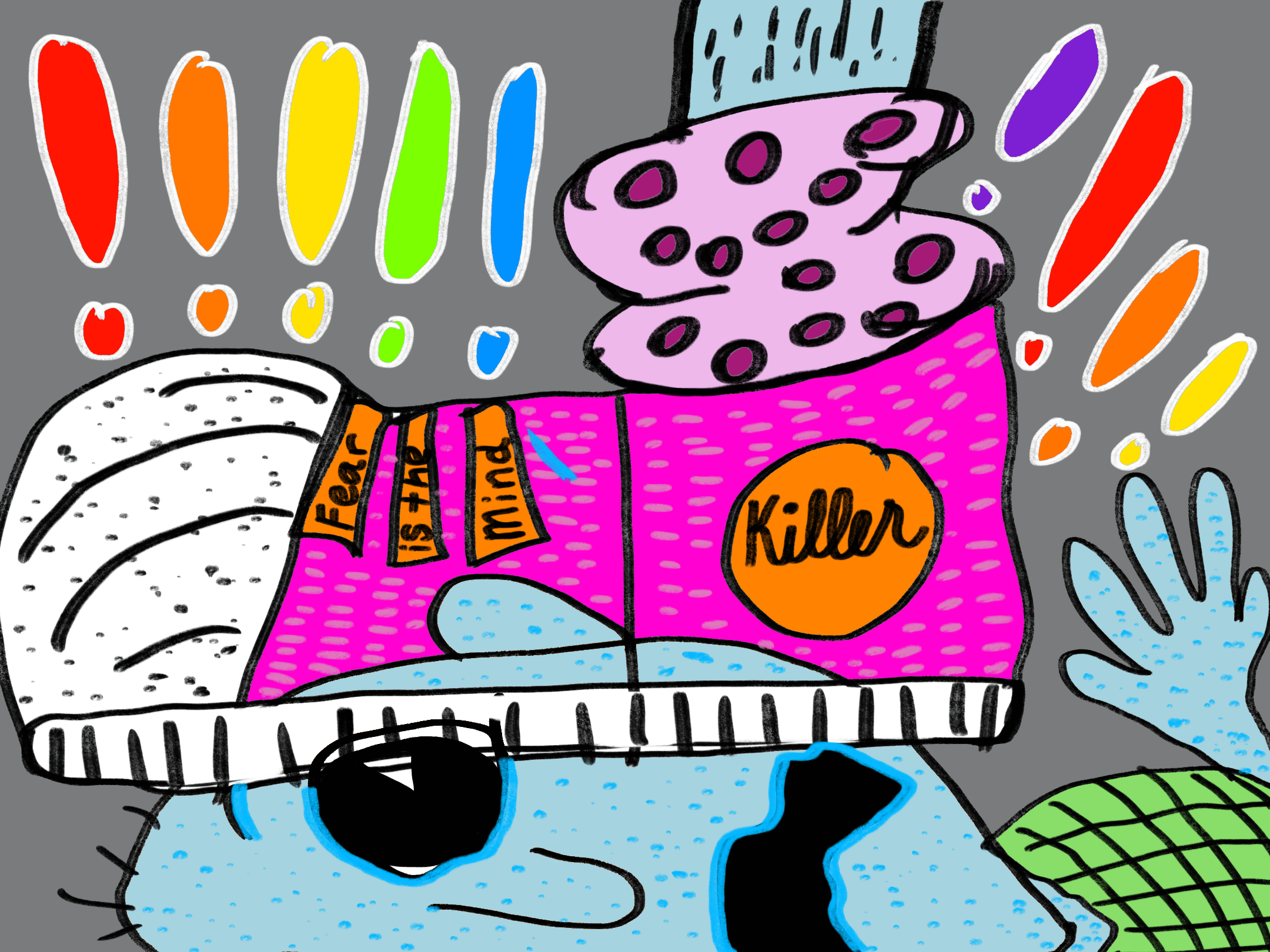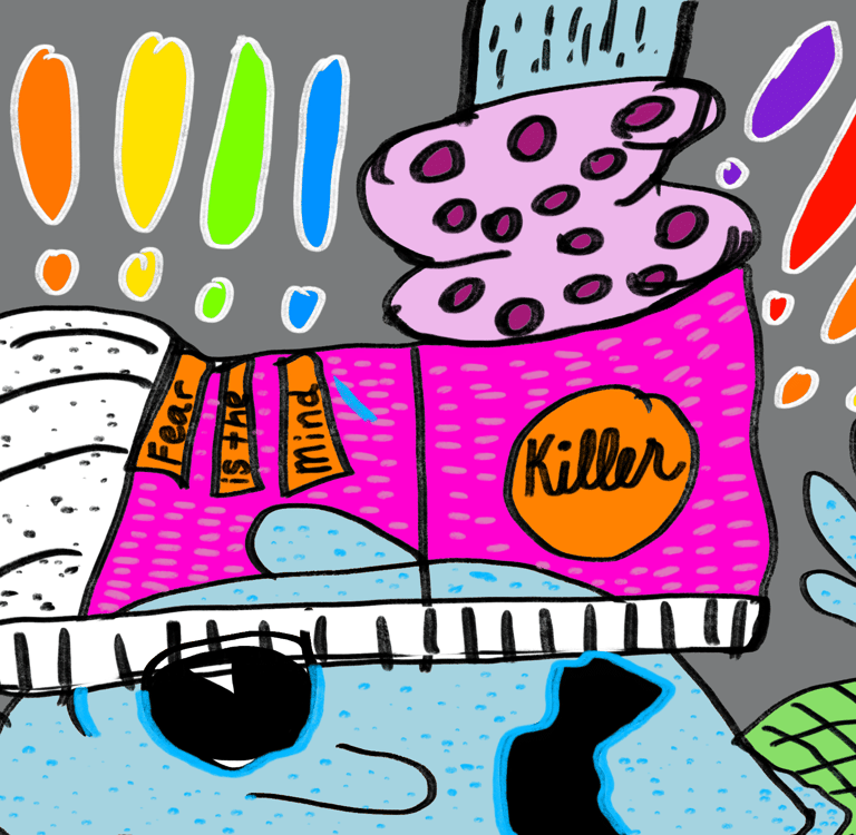 This is a series of drawings showing the hidden message of "Fear is the Mind Killer" embedded in every day life.