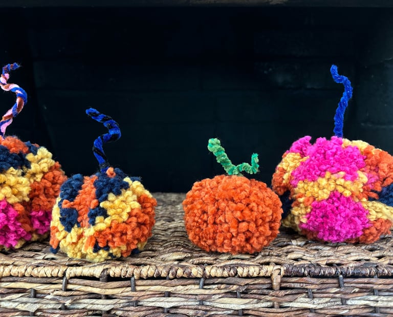 An experiment with chunkier, muted and neutral tones- these lil pumpkin cuties are a fun way to softly add texture and color to your Fall decor.